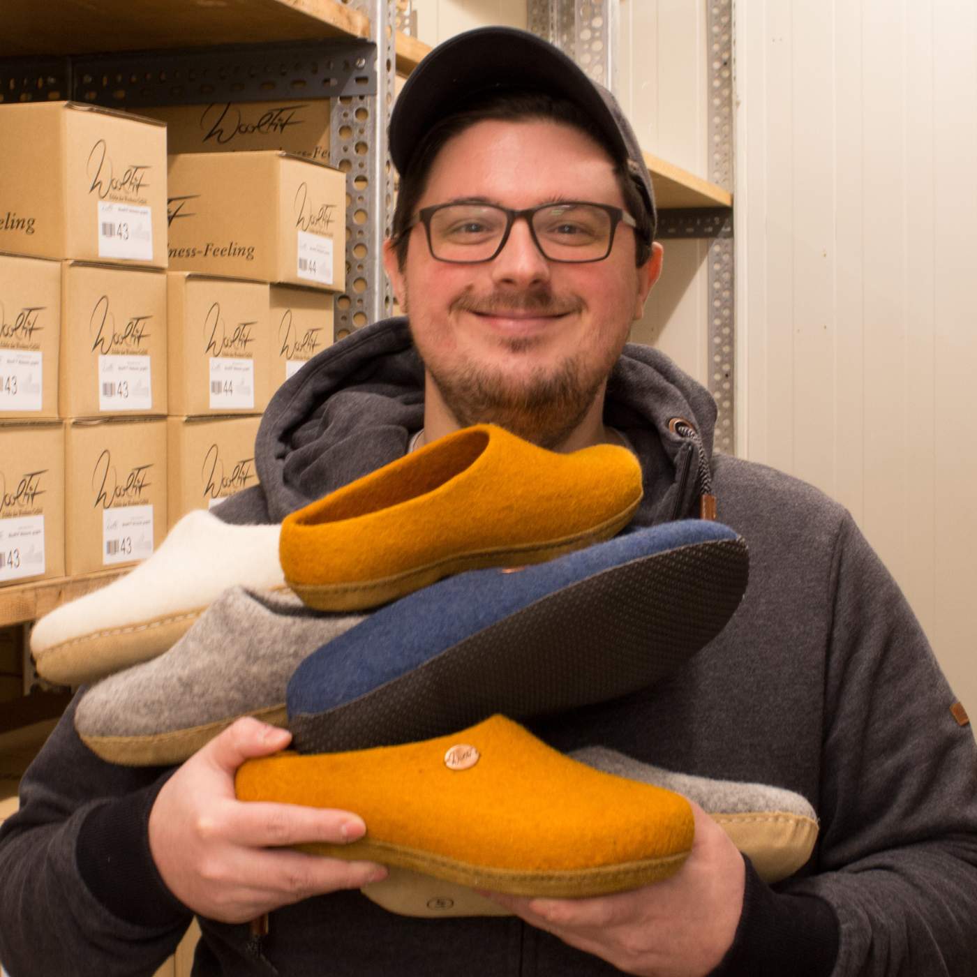 I really never thought that I would be in the slipper business one day. But I'm happy to be part of the WoolFit team. I mainly take care of the creative part of the brand in the area of advertising & social media, but in really stressful times you can also find me packing shoes or selling slippers at our local Christmas market.